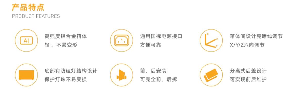 金立翔GF系列箱體,采用"X”元素和刀刃的鋒利完美結合,在不增加產品的厚度情況下打造超強視覺立體沖擊效果;金色V形裝飾和金色LOGO,提升了產品在色系上的層次感。采用鋁合金壓鑄成型工藝,軟連接拼接精度高;彈簧式緩沖的箱體把手,更具有人性化;隱藏式電源接插件,使得屏體無裸露線材,更美觀;箱體底部增加落地保護設計,有效防止燈面磕碰。